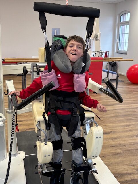 Durch das Lokomat-Training wird seine Beweglichkeit und seine Gehfähigkeit gefördert. Diese automatisierten Bewegungen fördern die Neuroplastizität und dadurch ein intensives Training.