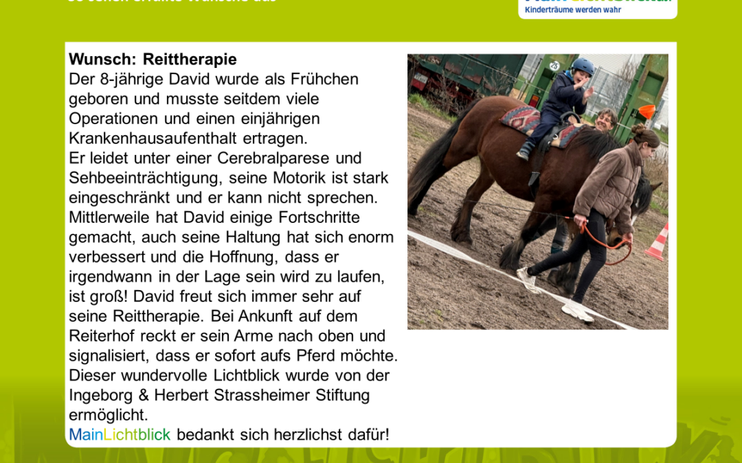 von Stiftung | 14. April 2026 | Allgemein, Kinder, MainLichtblick, Muskeltraining, Reittherapie, Spende | 0 Kommentare
